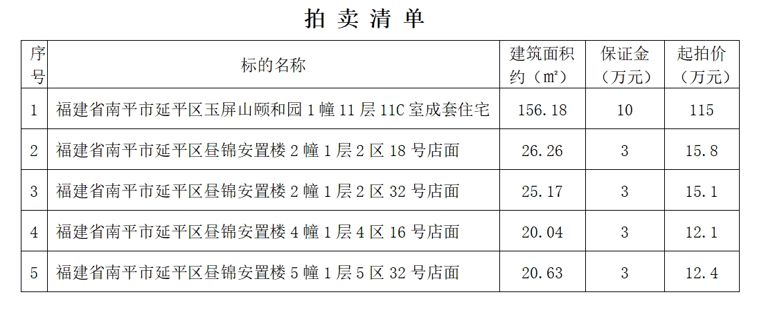 四、保证金交纳方式:详见《拍卖清单》,保证金应于2024年1月18日下午5时前汇入我公司指定的账户:户名:福建省博正拍卖有限公司;账号:13910101040011095; 开户行:农行南平市延平支行;报名时凭保证金缴存凭据确认竞买人资格。