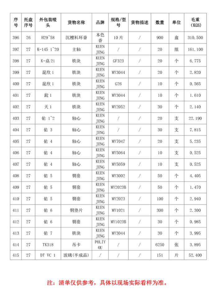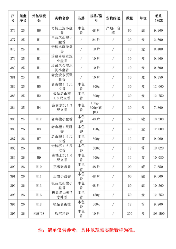 以下图片及清单仅供参考,具体以现场实际看样为准