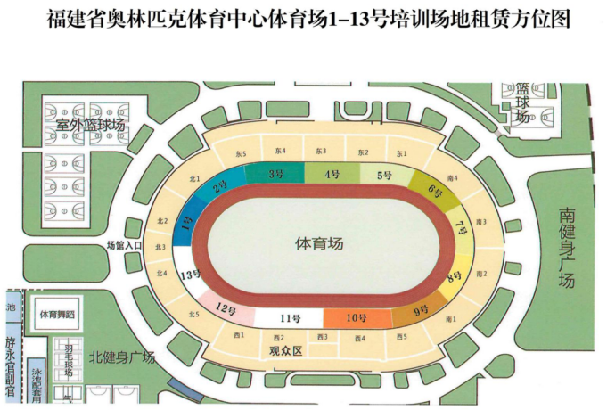 福建省福州市鼓楼区五四路310号福建省奥林匹克体育中心体育场内1-13号培训场地部分运营权二年期租赁权(共计13项标的分别对外出租)拍卖信息