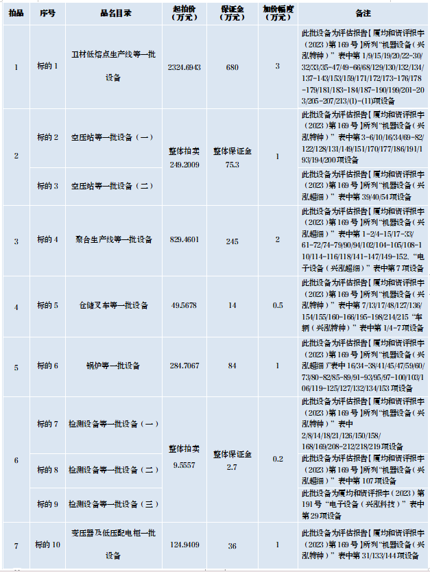 受委托,定于2024年7月8日上午10:00在中拍平台(网址:http://paimai.caa123.org.cn)公开拍卖:一批机器设备、电子设备分开转让(起拍价及保证金详见产权交易中心网站转让标的清单);看样、保证金缴交及报名截止时间:2024年7月5日下午17点15分止(即日起预约看样);竞买人应于报名截止时间前将竞买保证金汇入厦门产权交易中心有限公司账户(以实际到账时间为准),并携带相关资料至厦门特拍拍卖有限公司办理竞买手续。