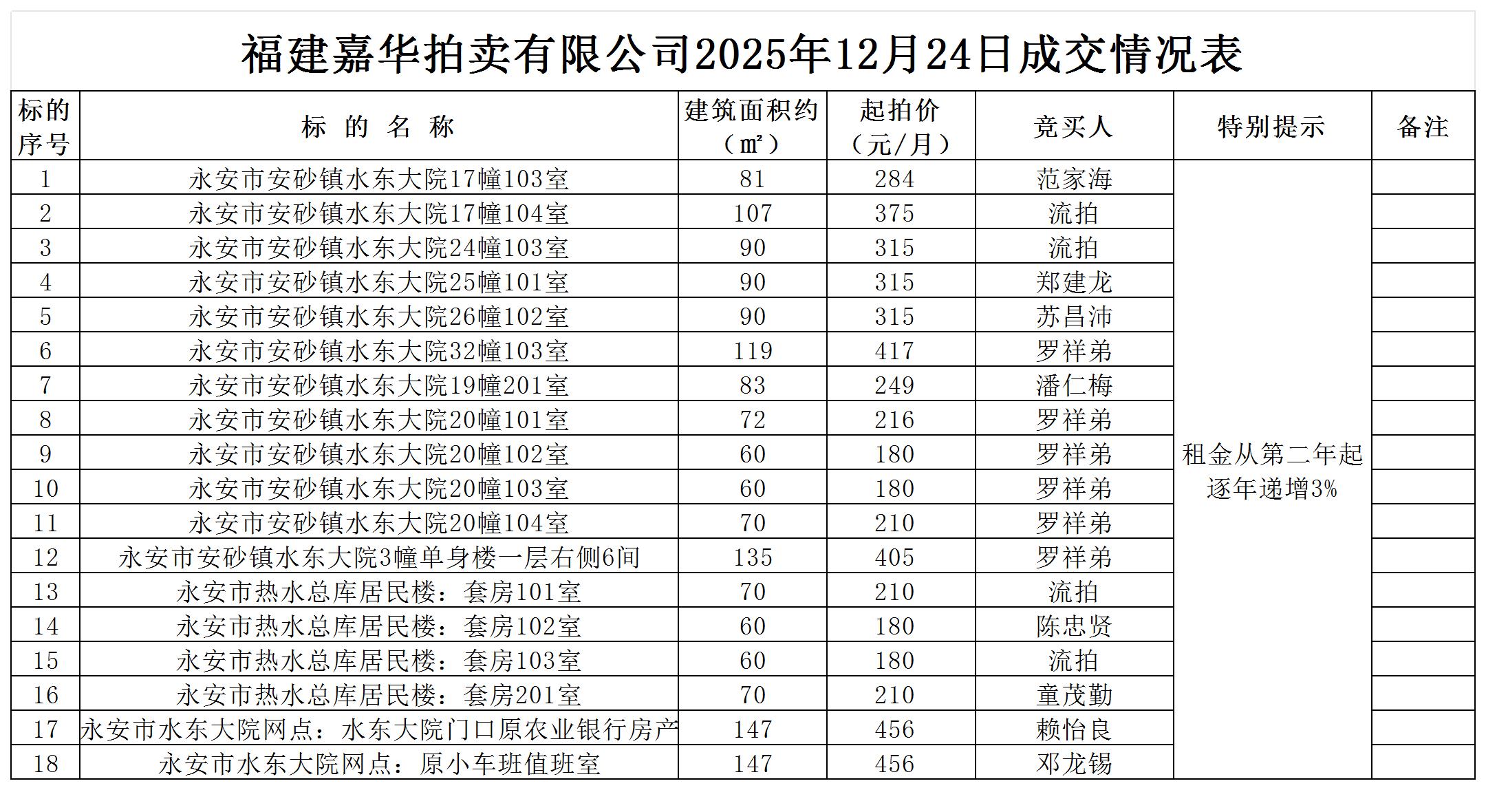 福建嘉华拍卖有限公司永安市煤业经营性资产租赁权拍卖结果公示