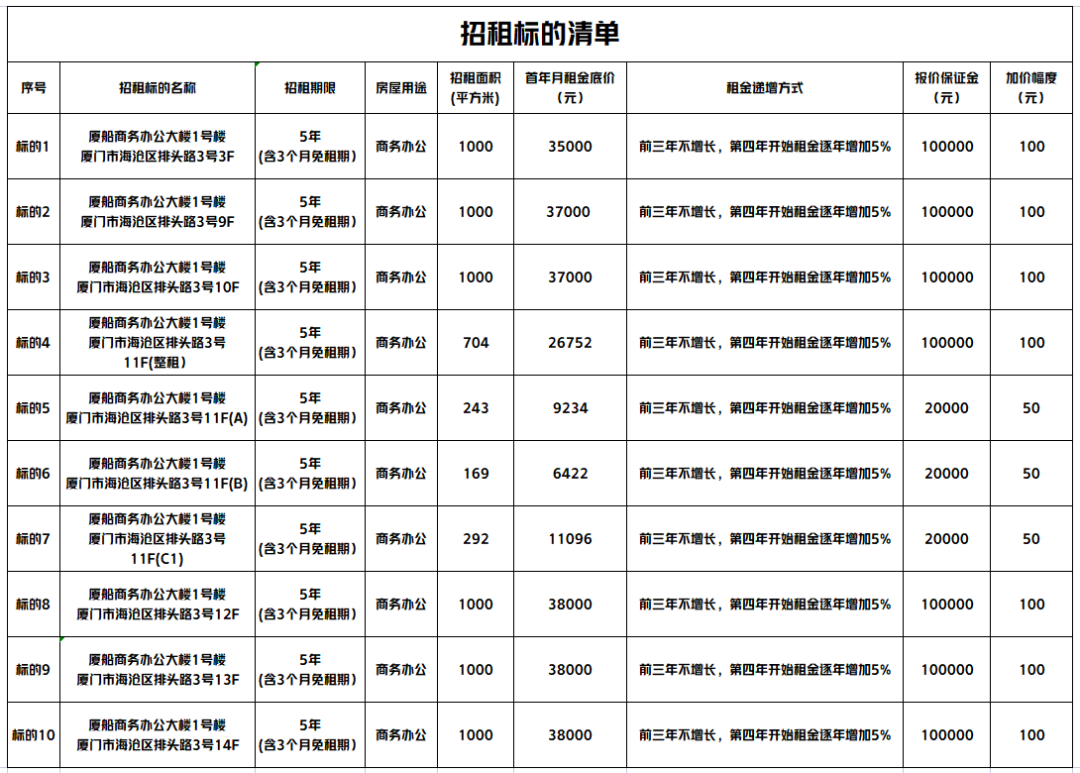 受委托定于2022年6月8日上午10时,在中拍平台(网址:http://paimai.caa123.org.cn)公开招租:海沧区排头路3号3F、9F、10F、11F、12F、13F、14F。(详见我公司网站及公众微信号)
