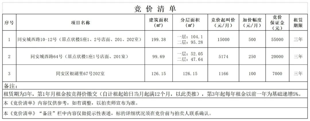受委托,我司将采用网络竞价方式举办同安城投公司代管3宗房产3年租赁权第2次公开招租的竞价会: