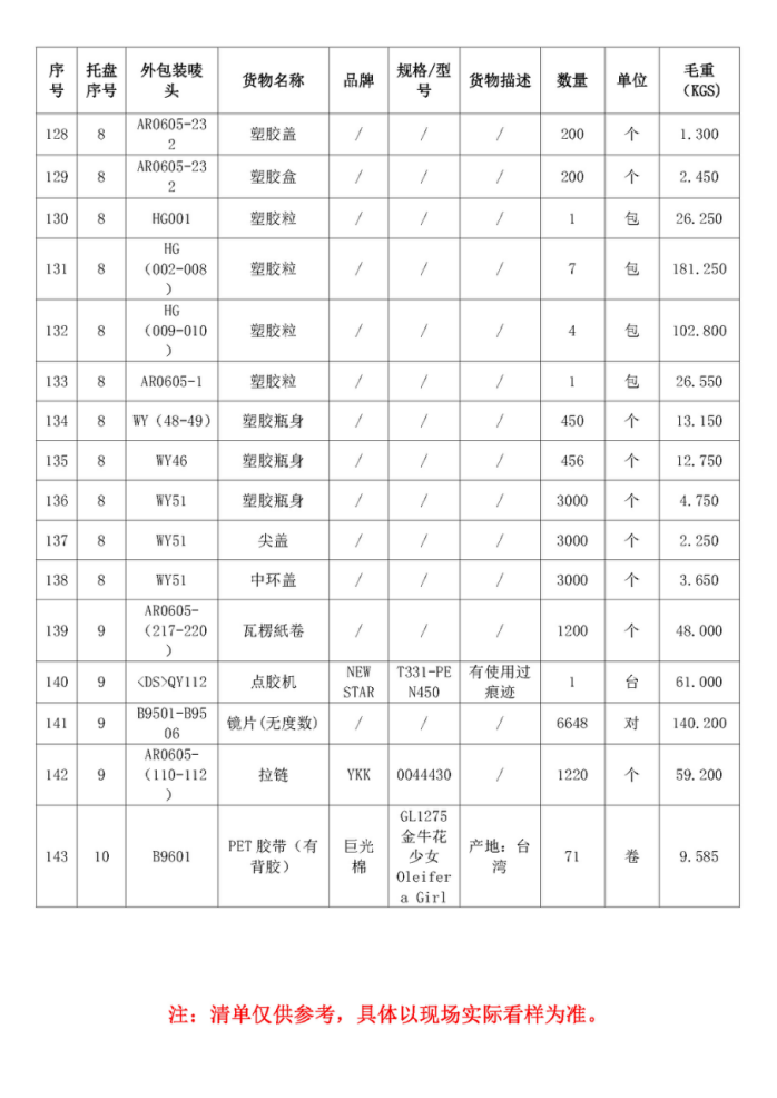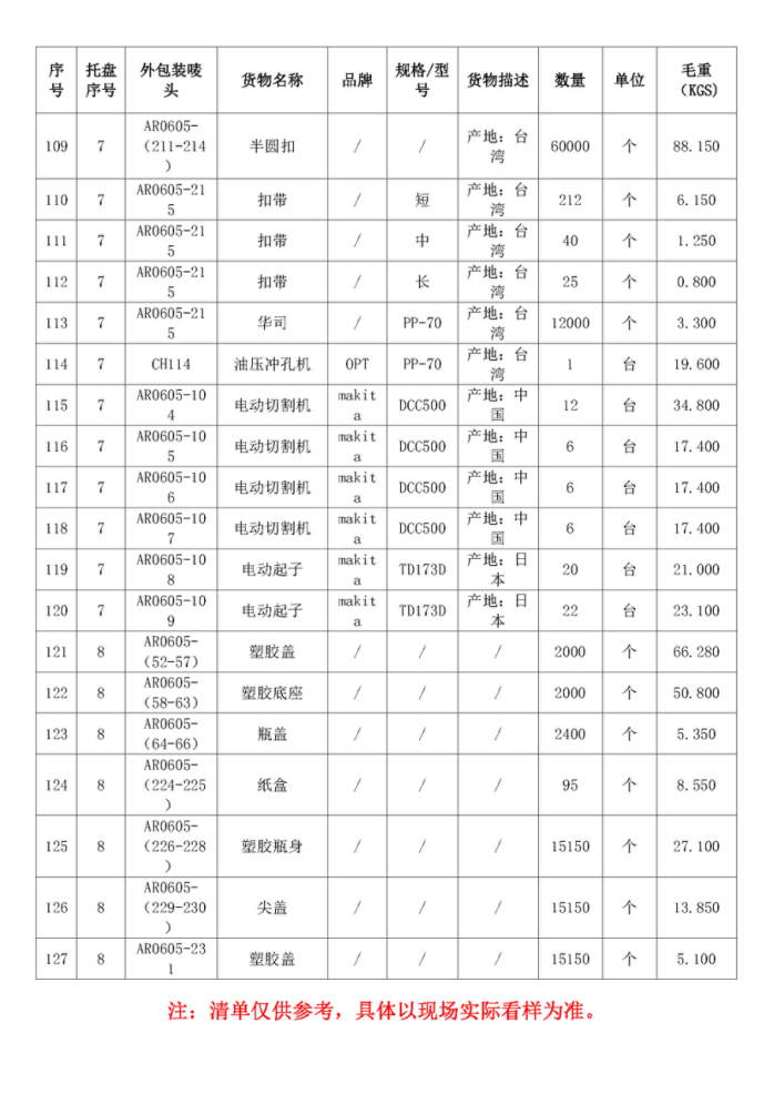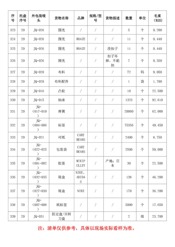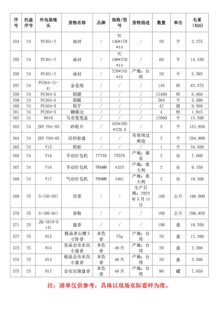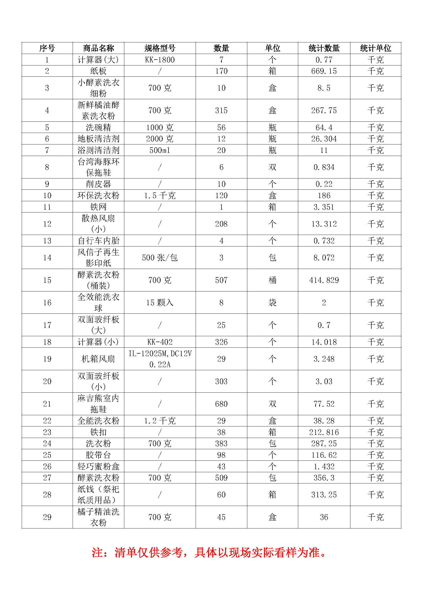 以下图片及清单仅供参考,具体以现场实际看样为准
