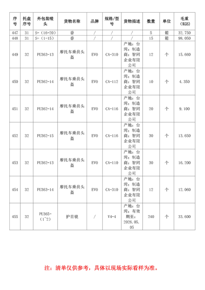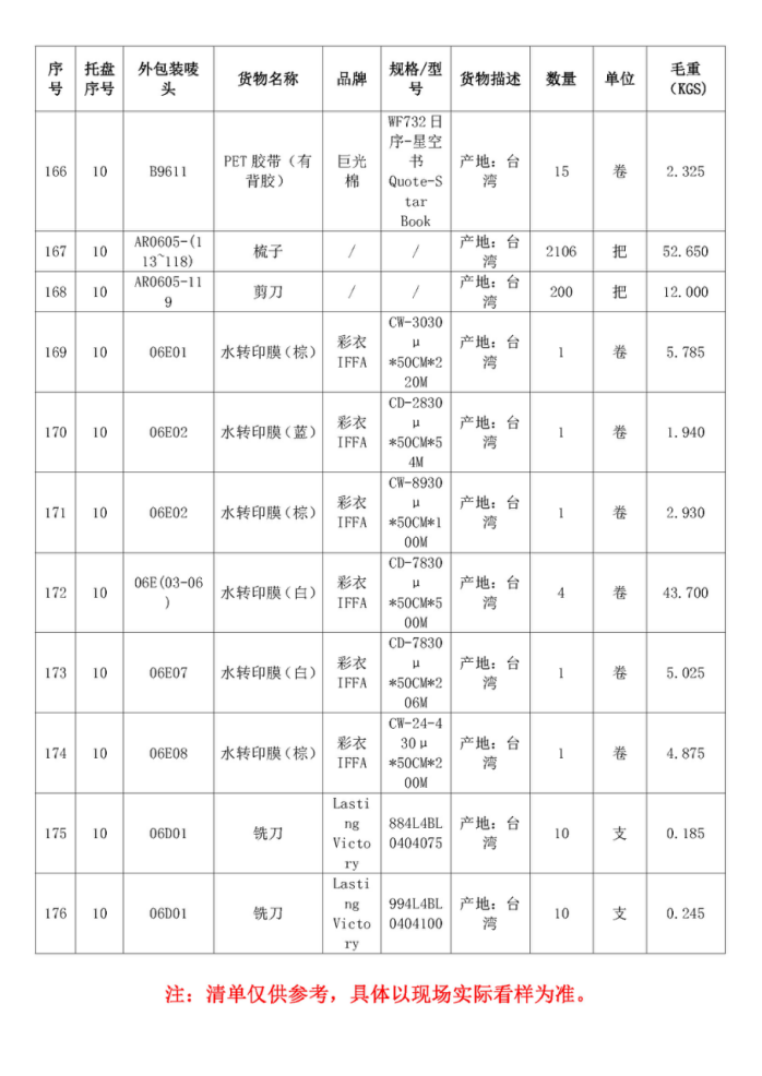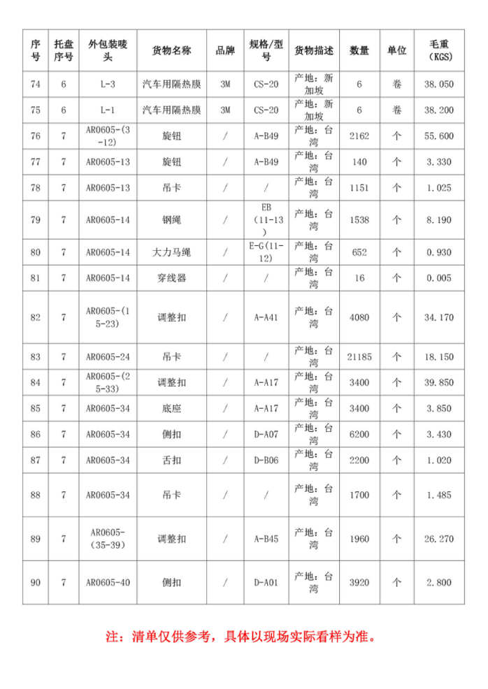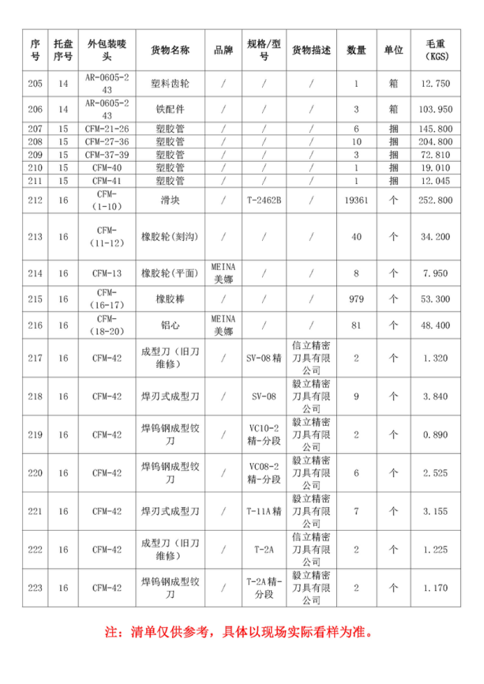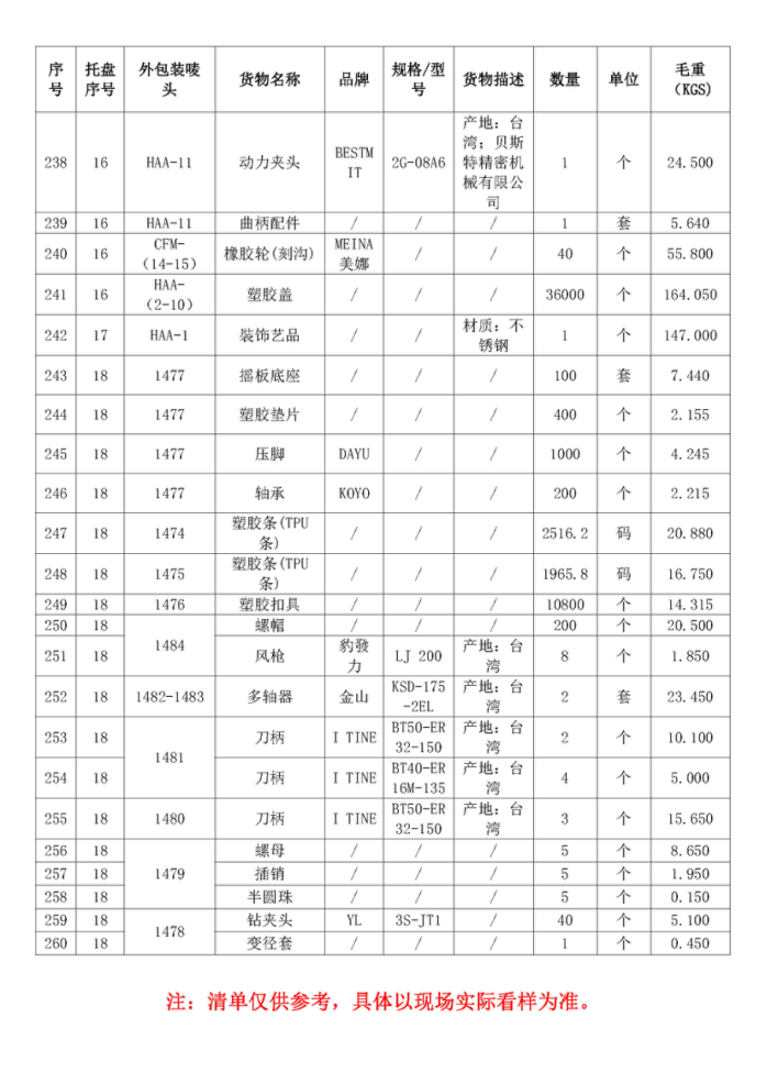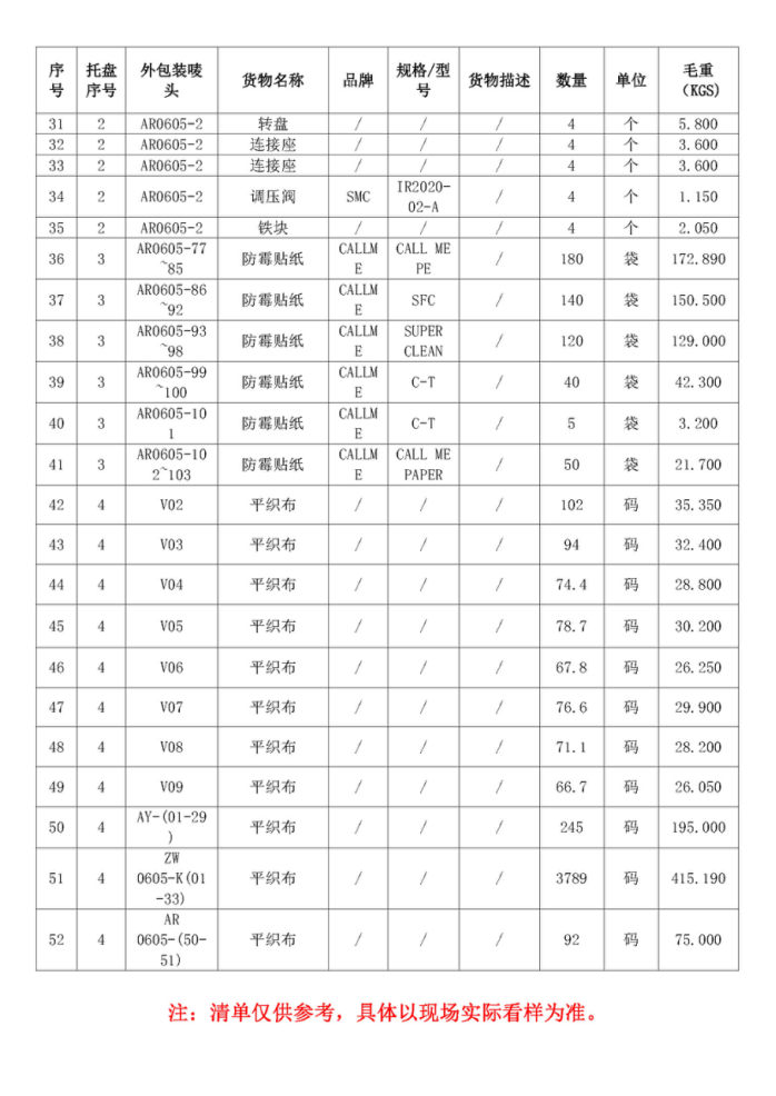 以下图片及清单仅供参考,具体以现场实际看样为准