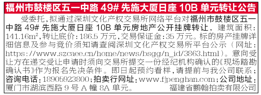 福州市鼓楼区五一中路49#先施大厦日座10B单元房地产