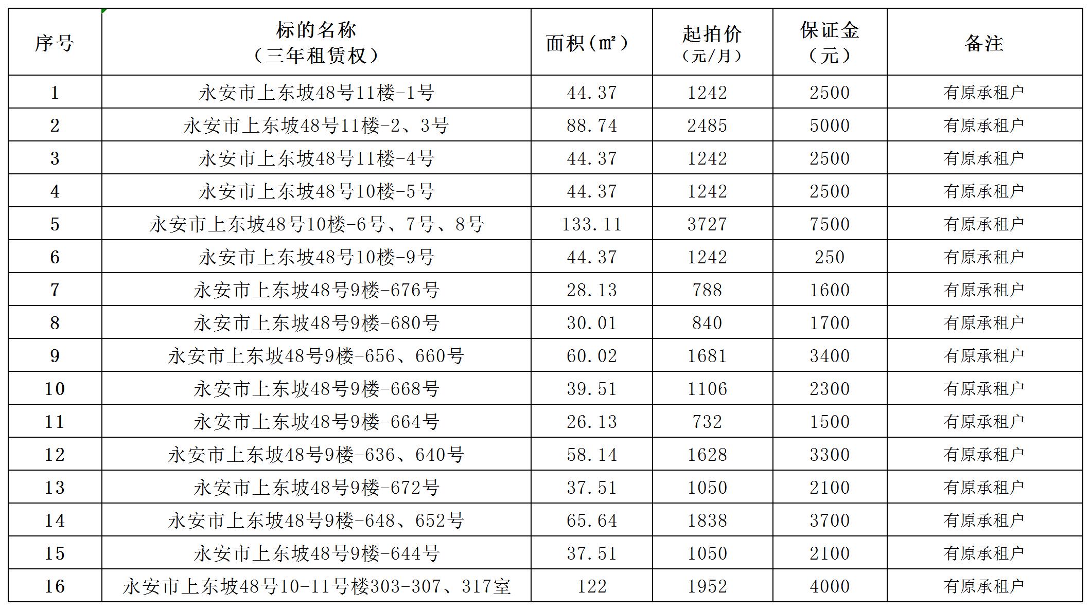 受委托,我公司定于2026年12月10日10时在永安市建融花园1幢二层举行拍卖会,公开拍卖标的如下: